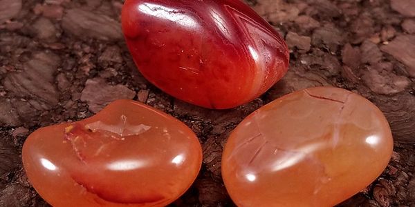 Carnelian is a silicate mineral and member of the chalcedony family. Its reddish, orange hues come from impurities within iron oxides. This stone is most commonly found in Indonesia, Brazil, India, Russia (Siberia), and Germany; its use dates all the way back to the Bronze Age. Carnelian is believed to bolster creativity, confidence, and expression.