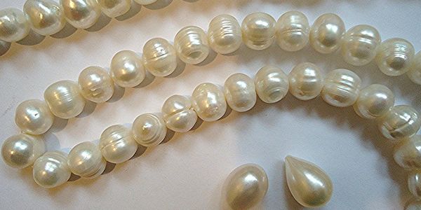 Freshwater pearls are a composite of the mineral Aragonite (a carbonate mineral) and the organic compound conchiolin (a protein). They are produced by oysters that mature in non-saline water (i.e. lakes & ponds). These pearls range in color from black to cream. They are believed to have calming and balancing effects on those who use them.